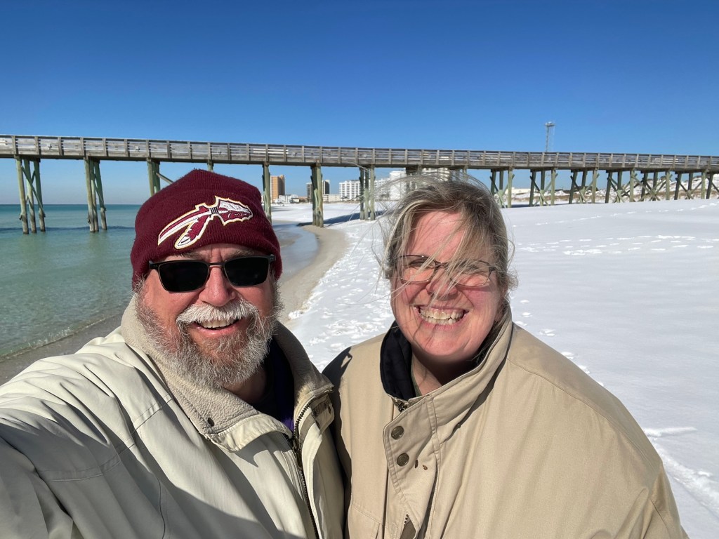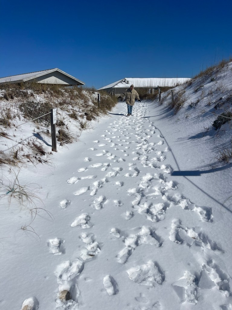 The day after we left home two weeks ago (has it really only been two weeks?) it snowed a lot. I was kinda sad to have missed it, but not any more. Five inches of snow at Panama City Beach!! That’s so crazy to me.