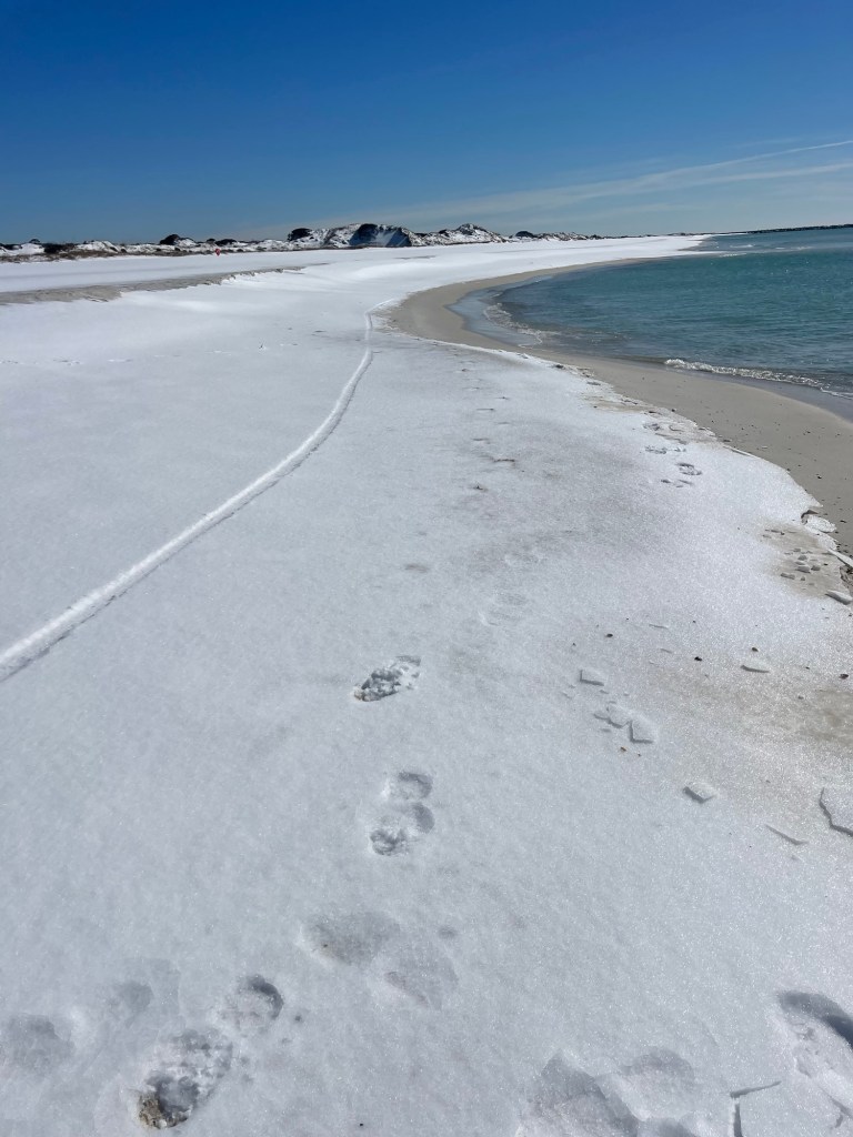 We took my sister’s advice and went to see the beach covered in snow. Debbie, we didn’t make a snow castle but Susy and I did throw some snowballs at each other. 🥶