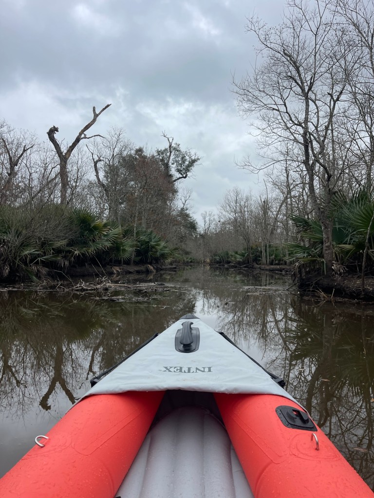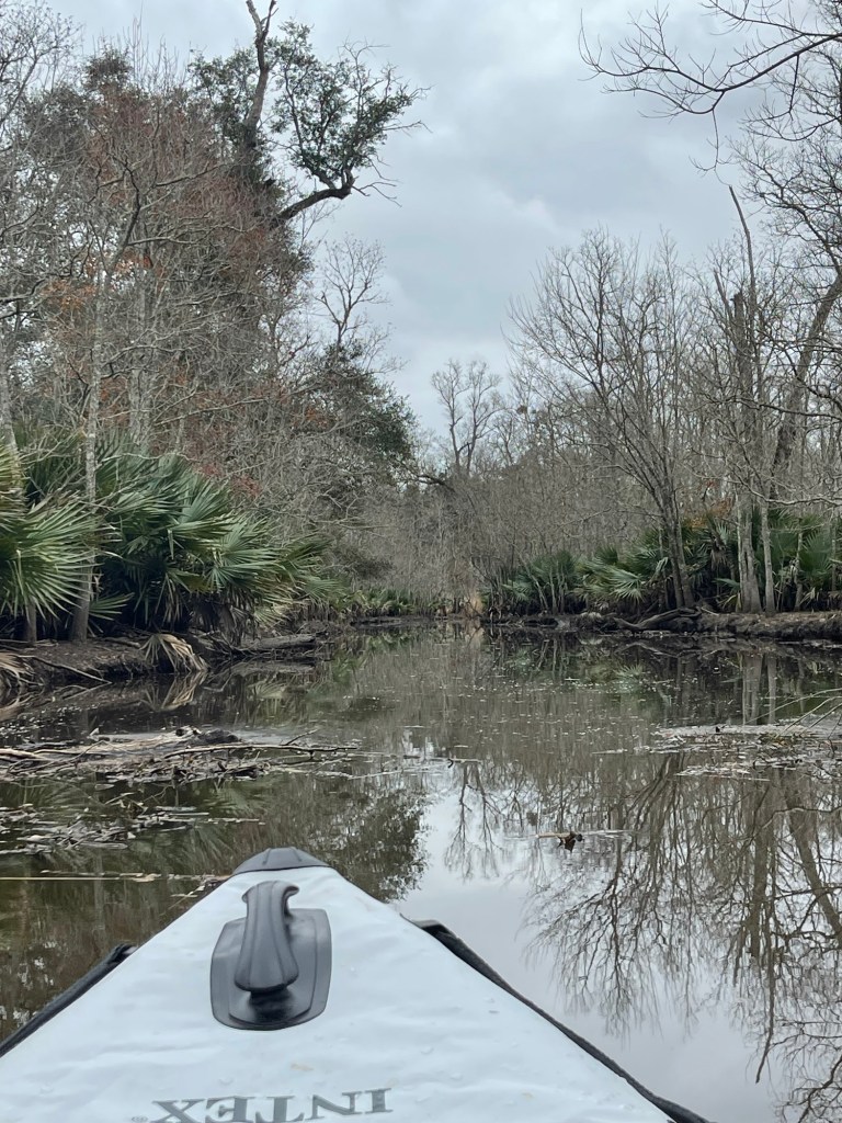 Went paddling again (the weather is fabulous today!) Took the ‘yaks out into the creepy swamp of doom. Lots of underbrush, lots of animal sign, but didn’t see anything beyond some inquisitive turtles. Still no alligators. ☹️