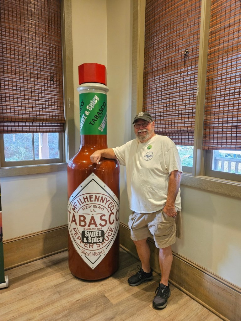 Today we went to Avery Island, home of the McIlhenny Co, makers of Tobasco sauce. Founded in 1868 by an out of work banker, it’s been making the sauce the same way with the same recipe for 157 years. It’s also the ONLY factory that makes Tobasco sauce. They have farms growing the peppers in different locations worldwide, but it all comes back to this island in Louisiana to be turned into sauce. The word “Tobasco” derives from an Indian word meaning “my food is kinda bland and needs a kick” or something like that.