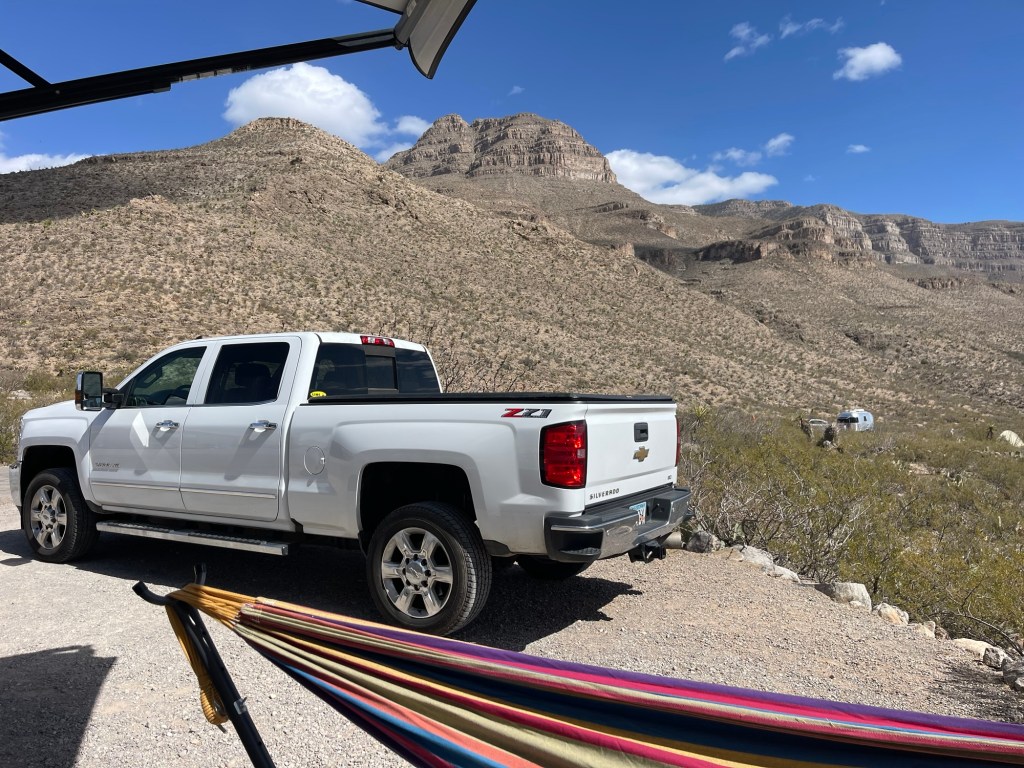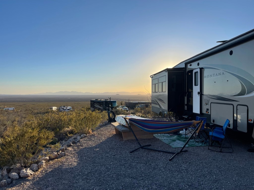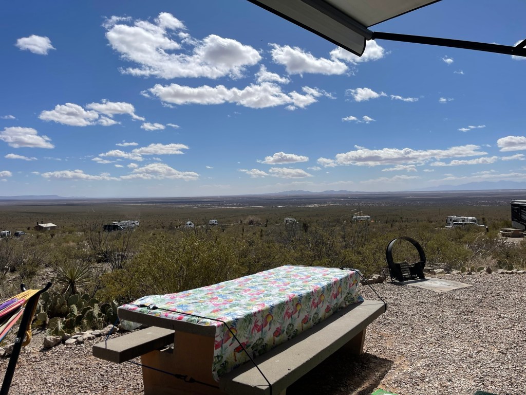 Oliver Lee Memorial State Park. We’re up on a hill overlooking MILES of desert, dust and cactus. Dust-nados twirling all over the place as we watched the sunset.