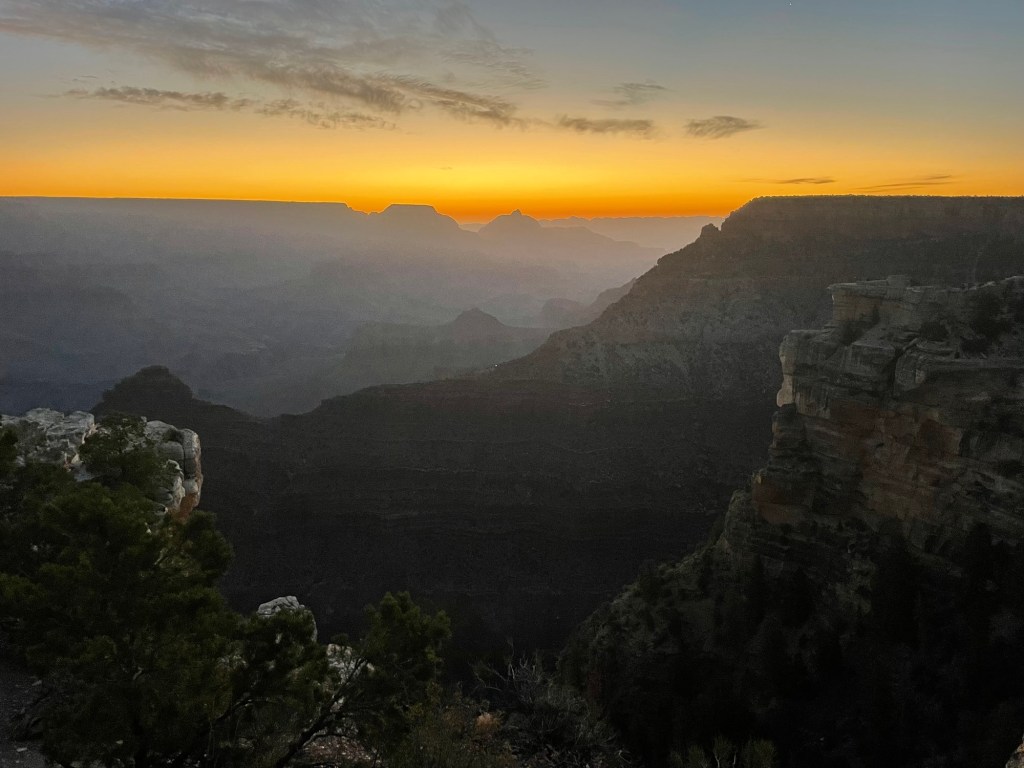After sunrise, we headed off to hike down the Bright Angel Trail into the canyon.
