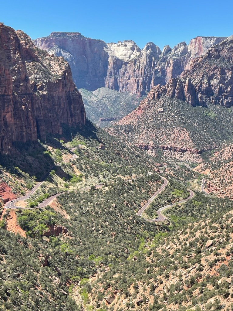We drove out to the northern part of Zion yesterday. Pretty drive and area, but not the canyon that Zion is known for. Today, we went through the tunnel to East Zion and then finally made it into the canyon area and walked up to Canyon Overlook for the view.