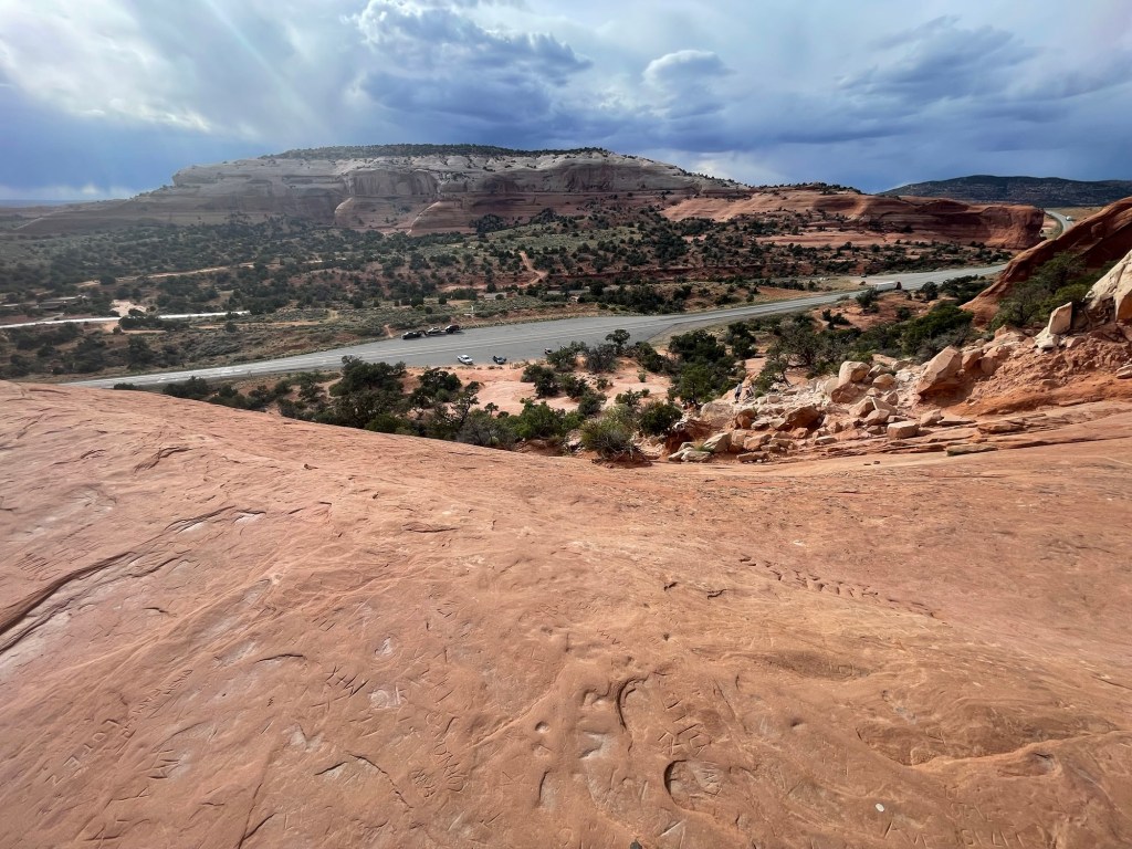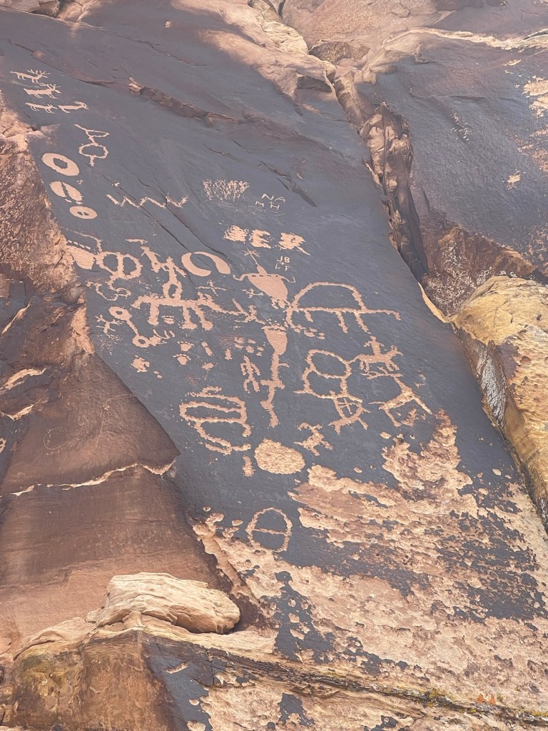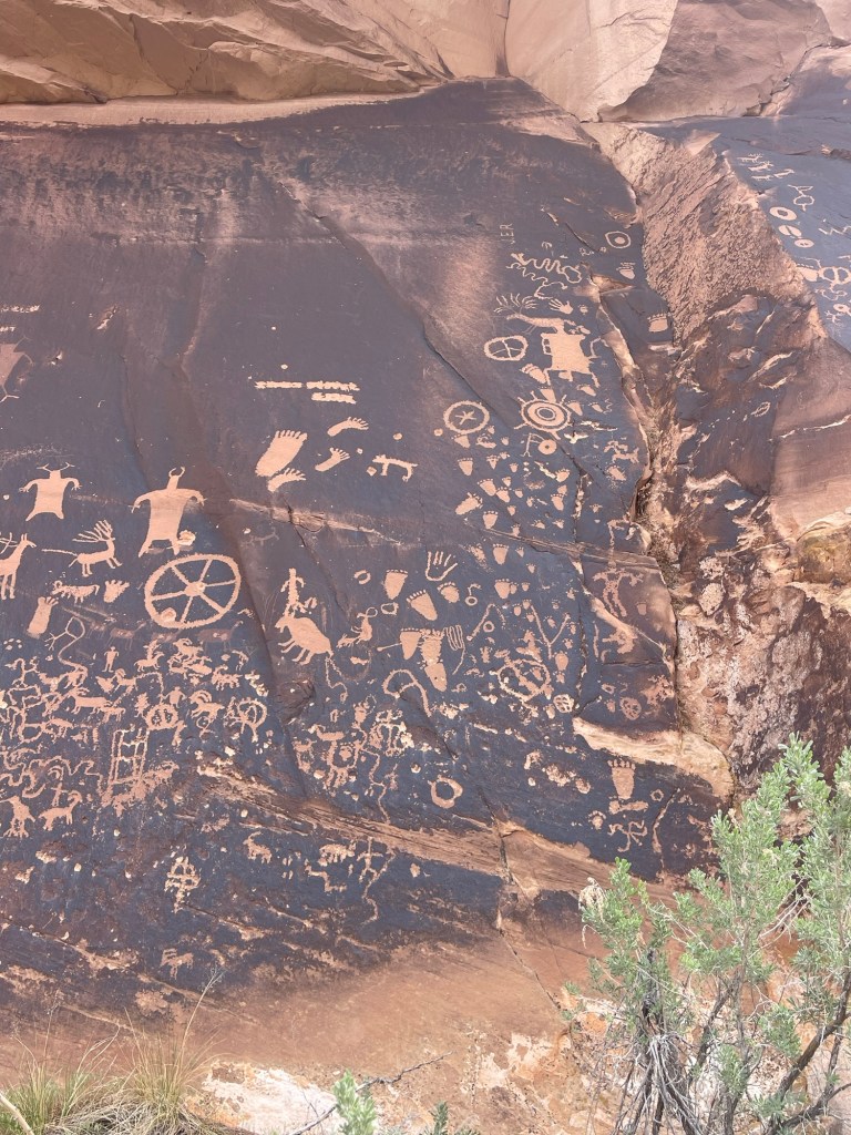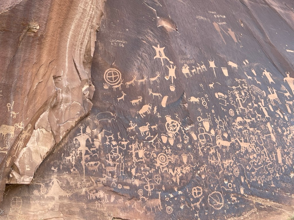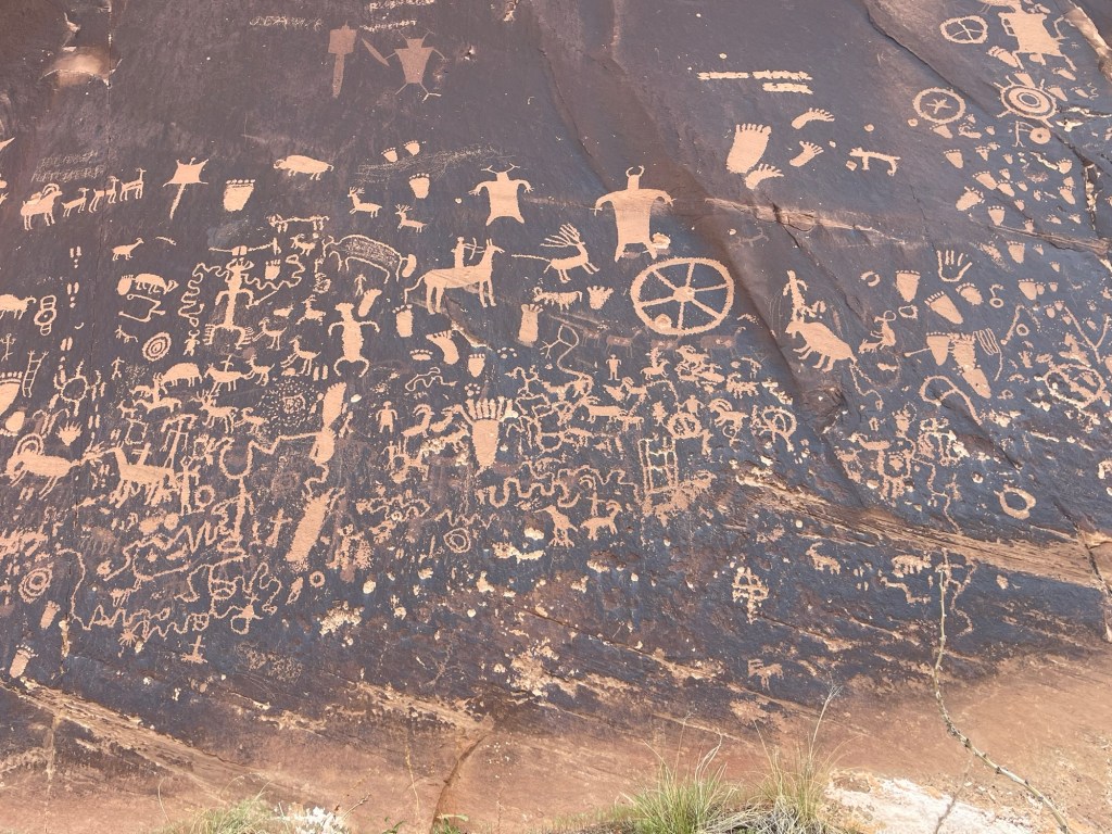 On the way to the park, I passed a cool spot called Newspaper Rock. A rock wall just covered in ancient pictographs. No one is sure what all the pictures mean, whether they are stories or lessons or just prehistoric graffiti, but there were a lot of them.