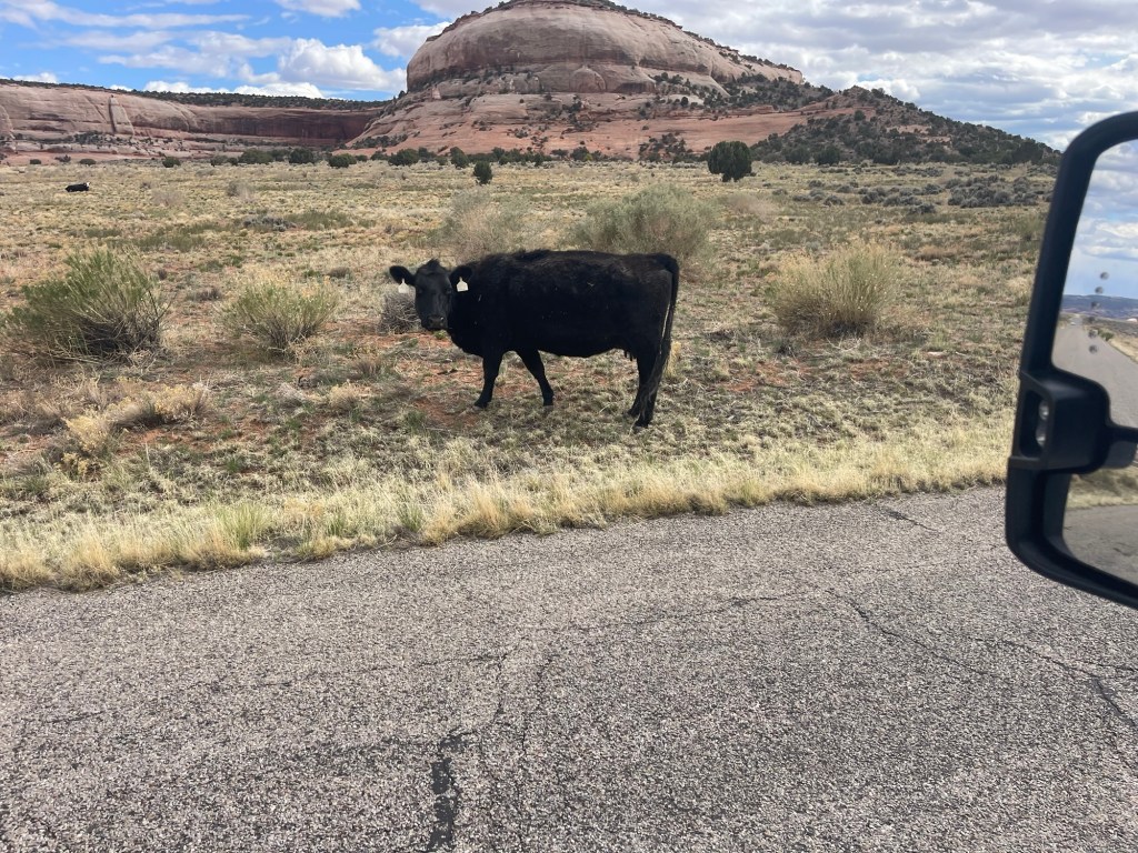 On the long trip back to the highway, the road crosses a lot of open range land, meaning no fences and cattle just living their best life and running wild. Cows all over the place, I was doing all I could to avoid cow pies spread across the road like land mines.
