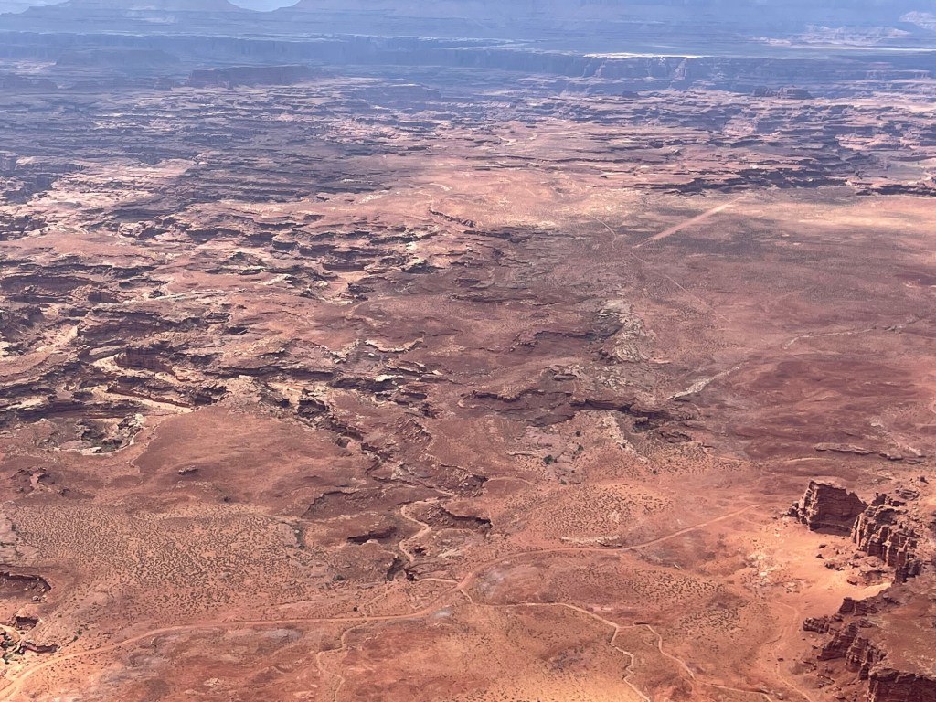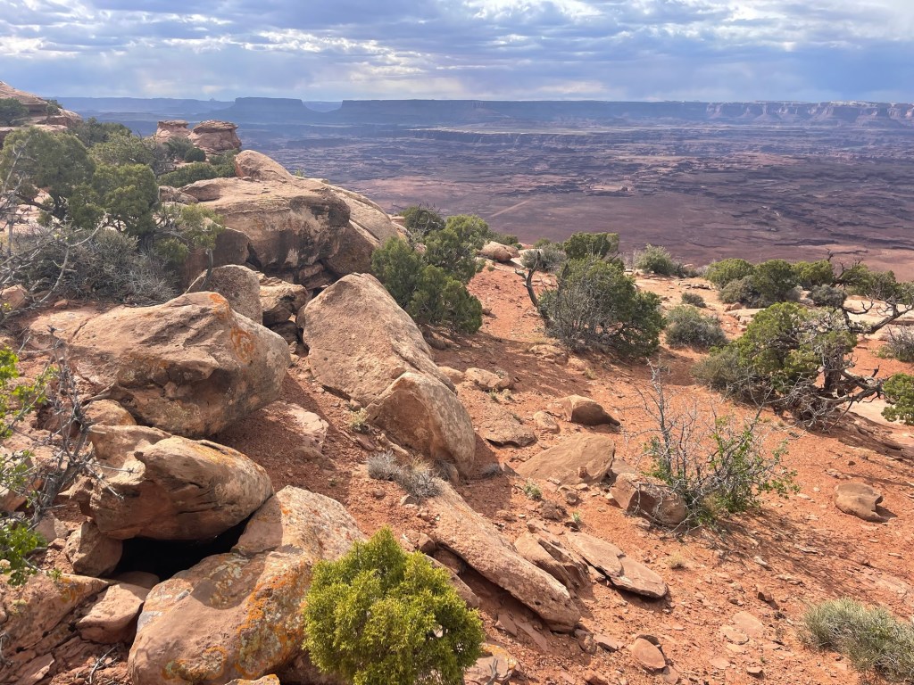 Needles Overlook is perched high on a cliff looking down on the entire southern Canyonlands district. On one side of the point, I could see the Colorado River snaking through a canyon (not as grand as Grand Canyon, but everything starts sometime), and on the other I could see a bird’s eye view of the huge network of canyons that make up the park, including all of the areas I had just explored at ground level and the Needles off in the distance. It looks a bit like I imagine Mars would look.