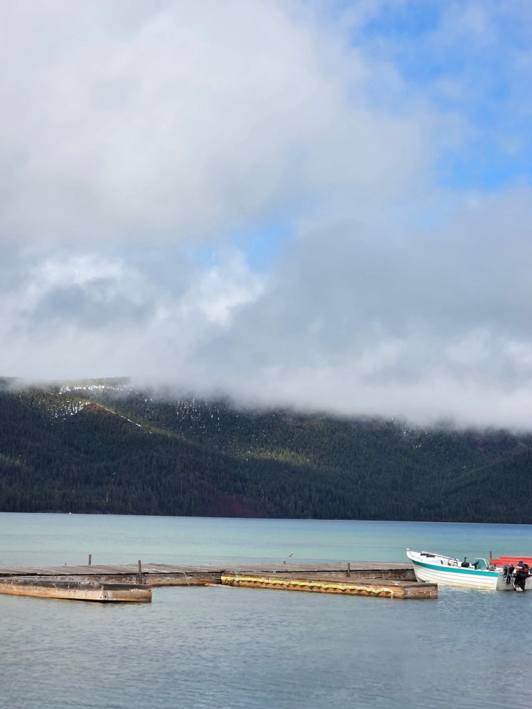 We just thought the lava tube was the end of the day, but a ranger told us that the road to Pauline and East Lakes was just opened. These are the central lakes inside the main Newberry caldera. We had to see that. 😄