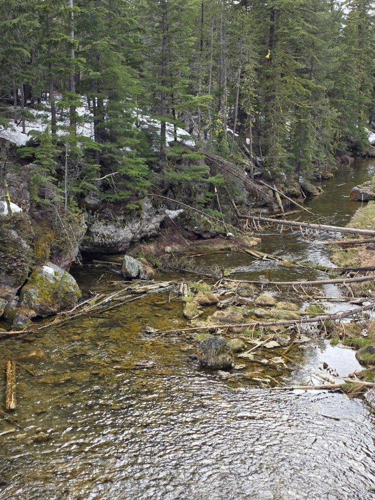 The lakes are fed almost entirely by snow melt, and there was definitely a LOT of snow still in the area. Then, a single river flows out of the lake and down the mountain.