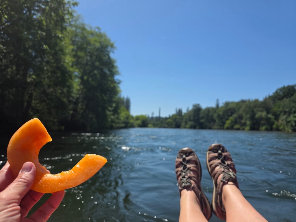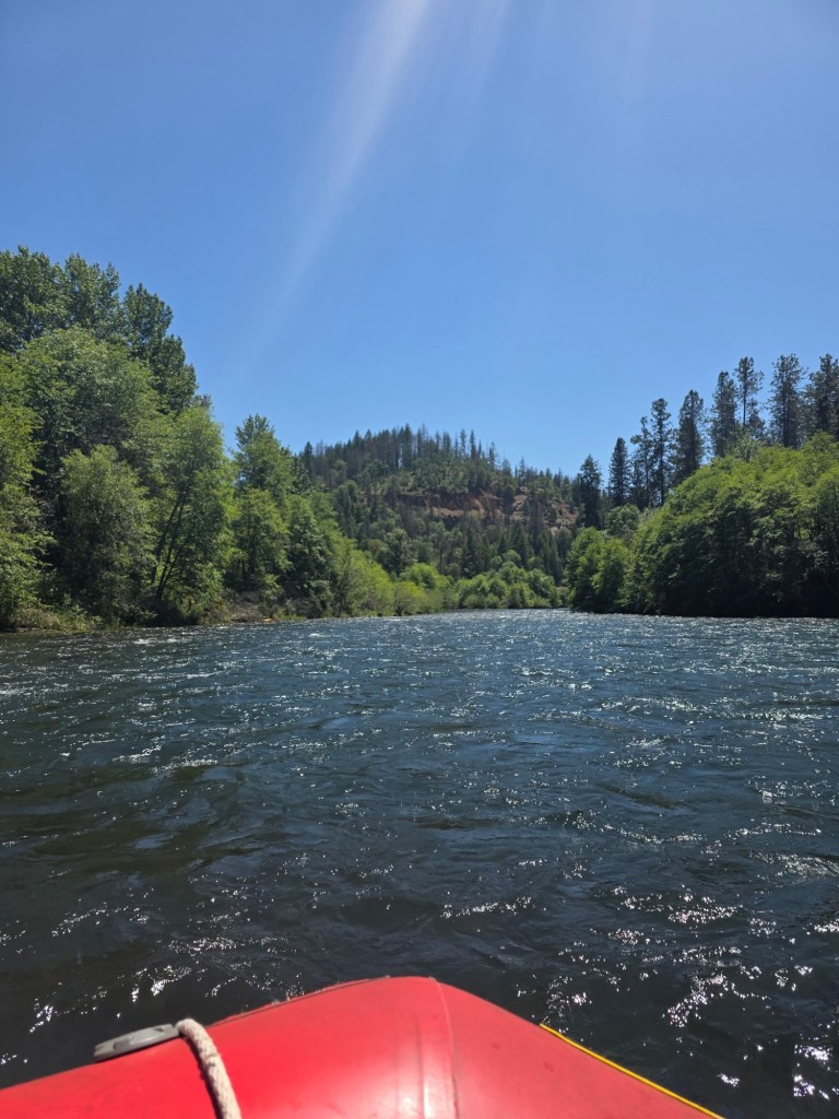 We went rafting on the Rogue River, oddly enough with a company called Raft the Rogue. Easy class 1 and 2 rapids, just enough roller coaster to have some fun, but overall a relaxing afternoon in the sun. The water comes out from the bottom of the dam at Lost Creek Lake so it’s pretty cold at 50 degrees, too cold to swim in for my taste, but very nice to dip arms and legs into or take a wave over the side.