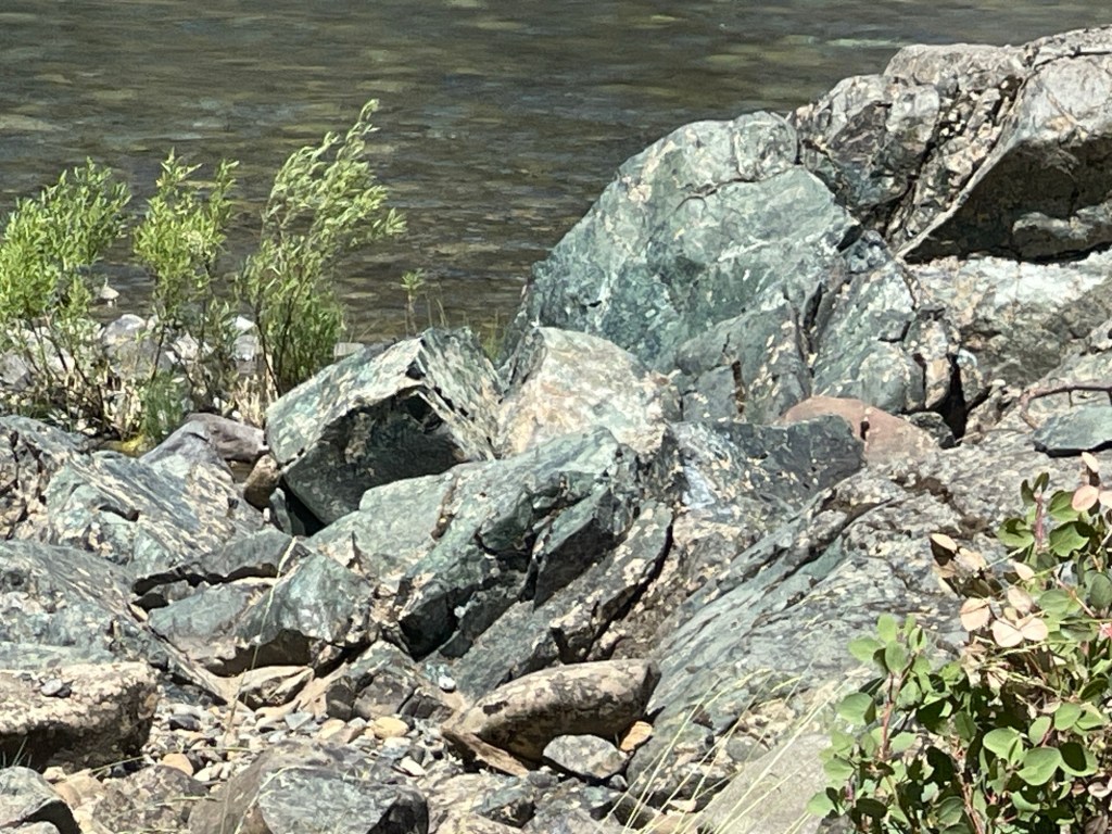 We’re on the flanks of Eight Dollar Mountain. The banks of the river are thick with veins of the stuff, chunks and pieces cracked off all over the place where previous rock hounds have been collecting.