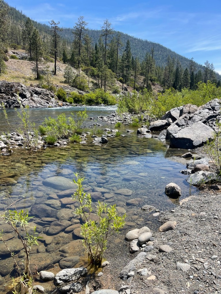 We parked up by the road and walked down to the river, and as we made it down, we saw a guy camping down here with his Subaru. Well, of course, I had to take that as a challenge to my manhood. If he can get his puny car down that rocky embankment, you’re dang straight I can get 8000 lbs of American steel down here. 🤣