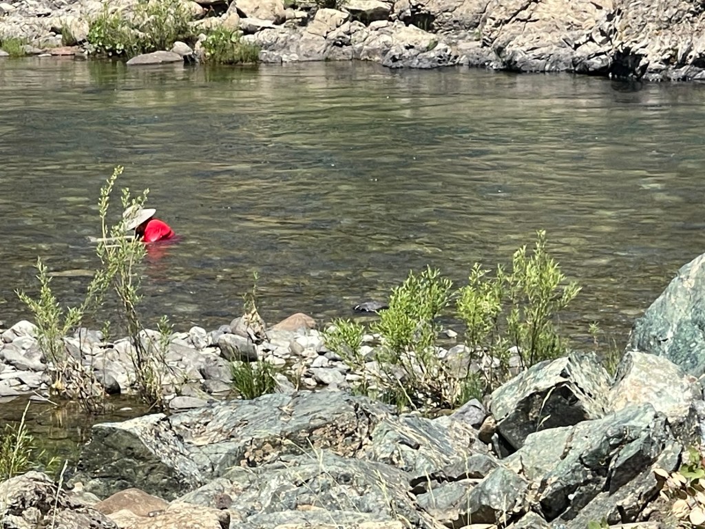 As I sat in the river watching Susy do her rock thing, I watched as a huge bald eagle flew over, perching in a tree down past us, and then going from tree to tree till it went around the bend. We also saw a couple snakes coming out of the water to sit on the rocks by us.