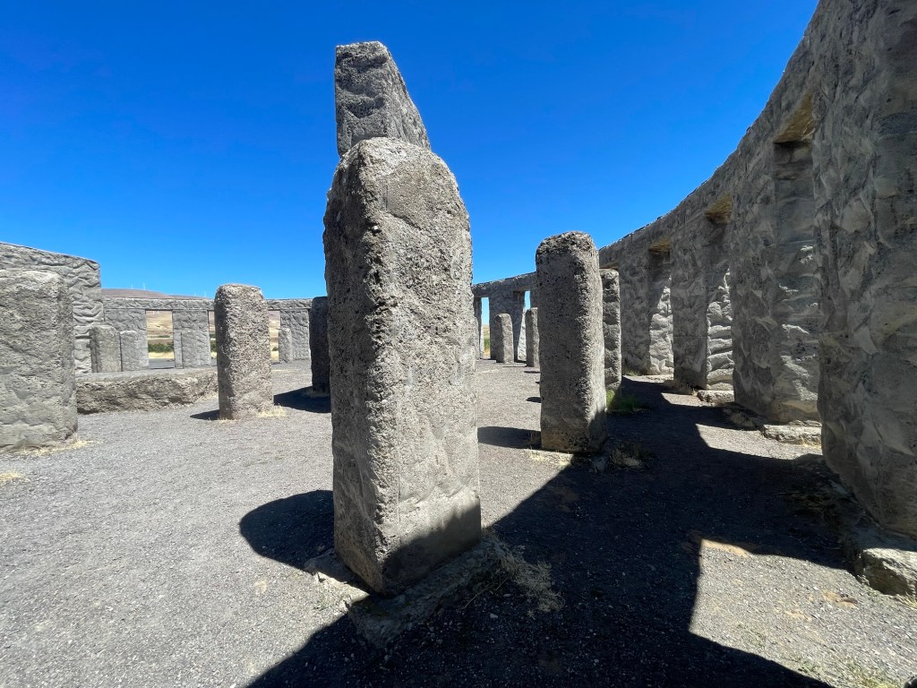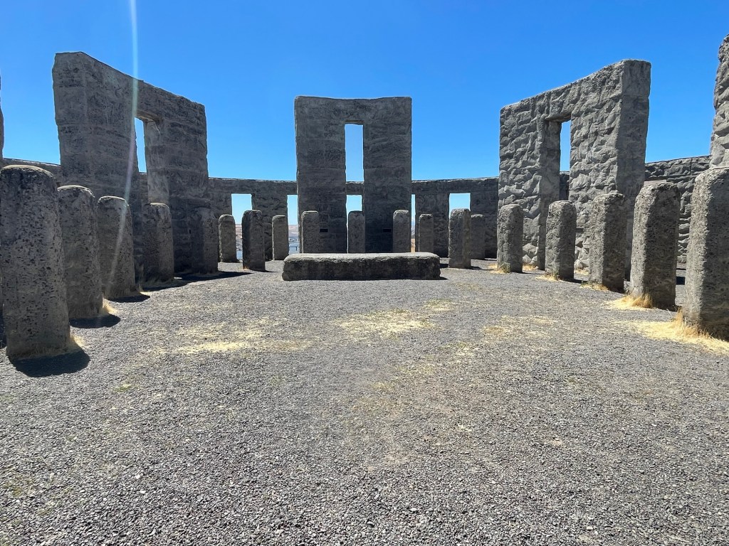 Near the town of Maryhill Washington, a man named Samuel Hill, a hundred years ago, built a full scale replica of Stonehenge (before it all got pushed around) on a hill overlooking the Columbia River.