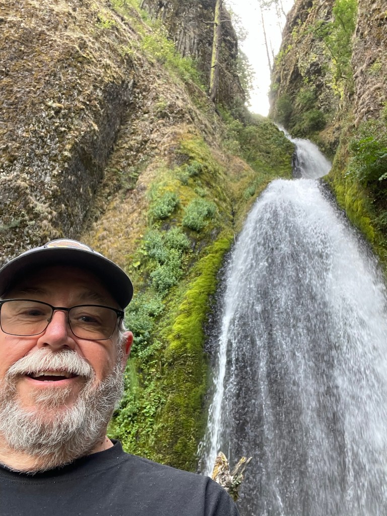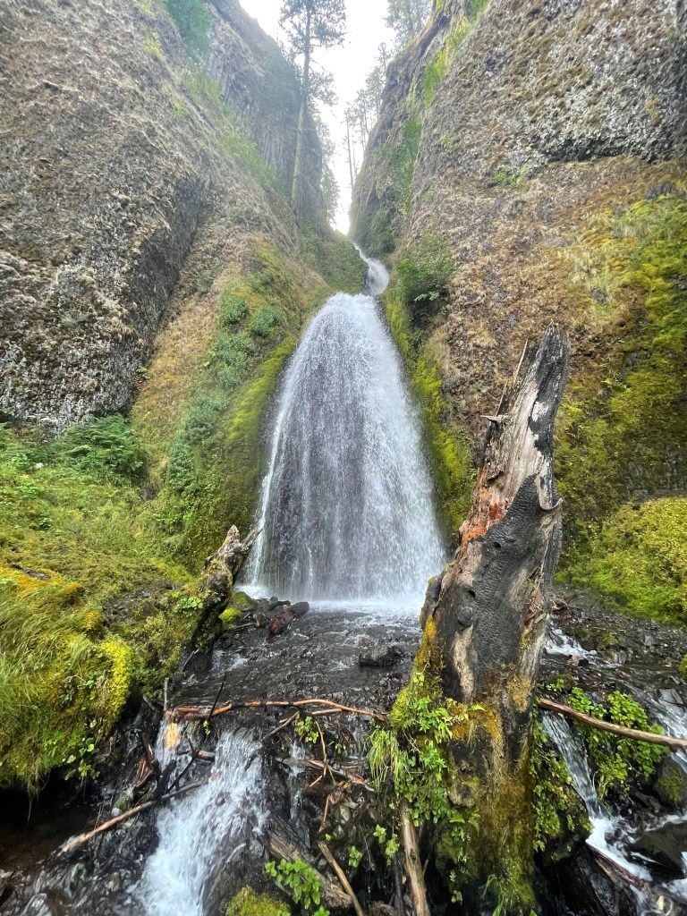 Then Susy and I walked up to Wahkeena Falls. Easy walk up to a very pretty falls and a small bridge right at its base. We could feel the spray right in our faces.