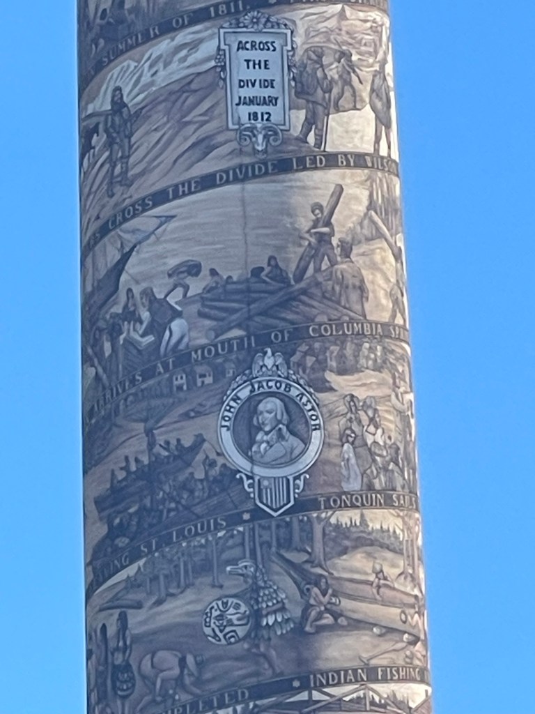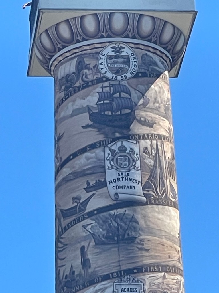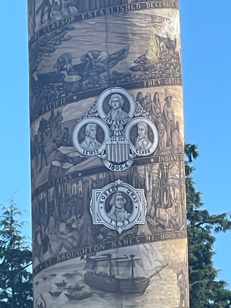 I visited the Astoria Column. A 165 ft tall tower perched on a hill, overlooking Astoria and the Columbia. The column has an interior spiral stairway, 164 steps to the top platform. I counted. 😓