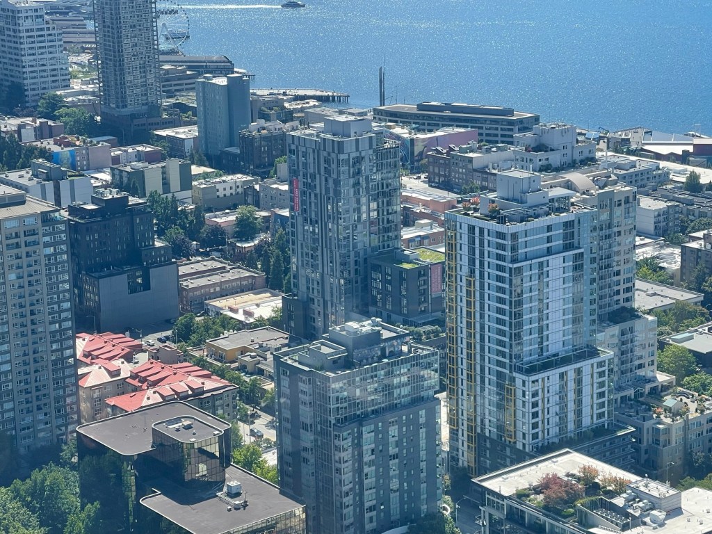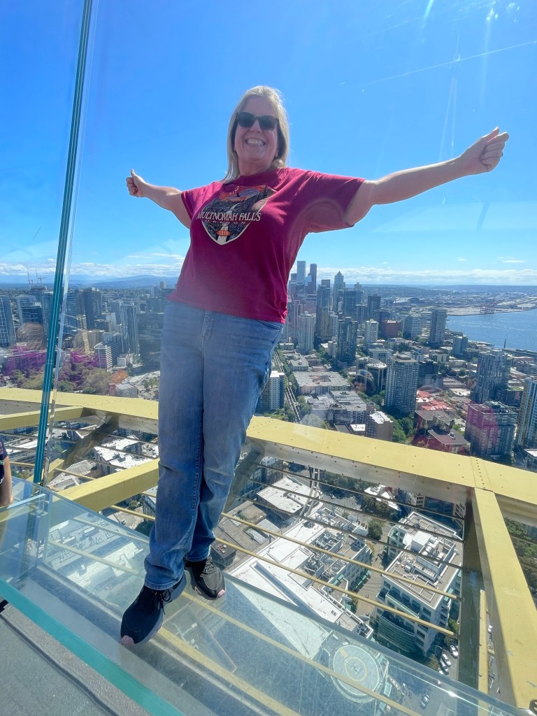 Space Needle time. One of the most iconic sights in Seattle, it was a must-see on our list. Also built for the 1962 World’s Fair, it stands over 600 ft tall, so up we went.