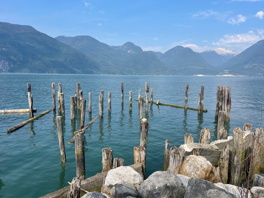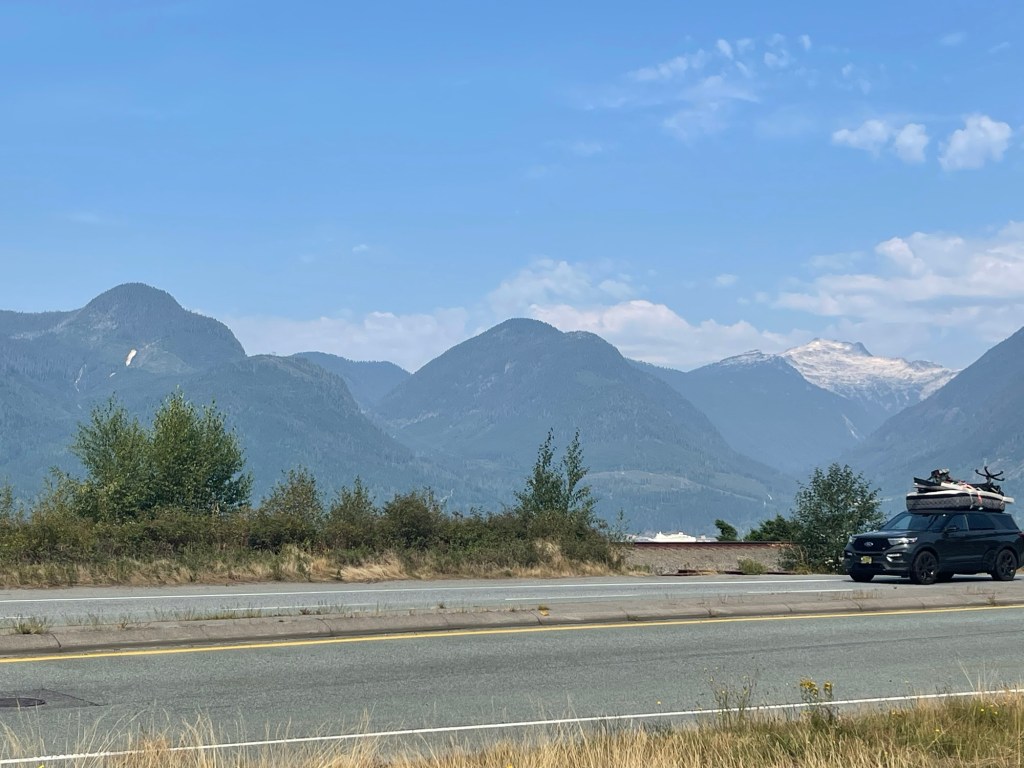 We drove up the coast north of Vancouver on the Sea to Sky Highway. The road hugs the cliff side, similar to back in Oregon, but overlooking huge but protected waters rather than the wide open Pacific. Looking out, we could see ships and islands just peppering the views, ferries going from place to place.