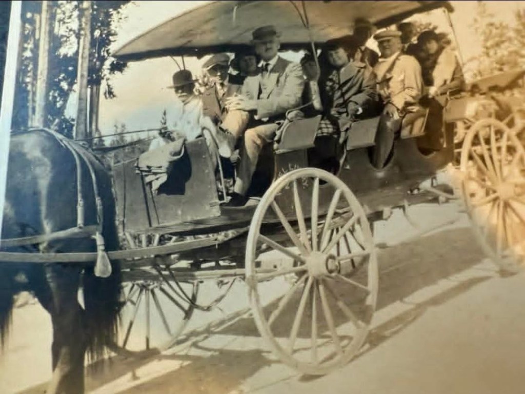 And the family history in Yellowstone NP goes all the way back to 1916, when my great-aunt Amy visited. That’s her in the second row. Roughing it the historic way.