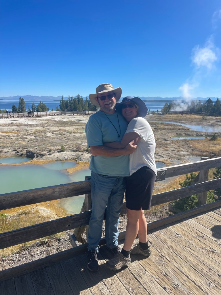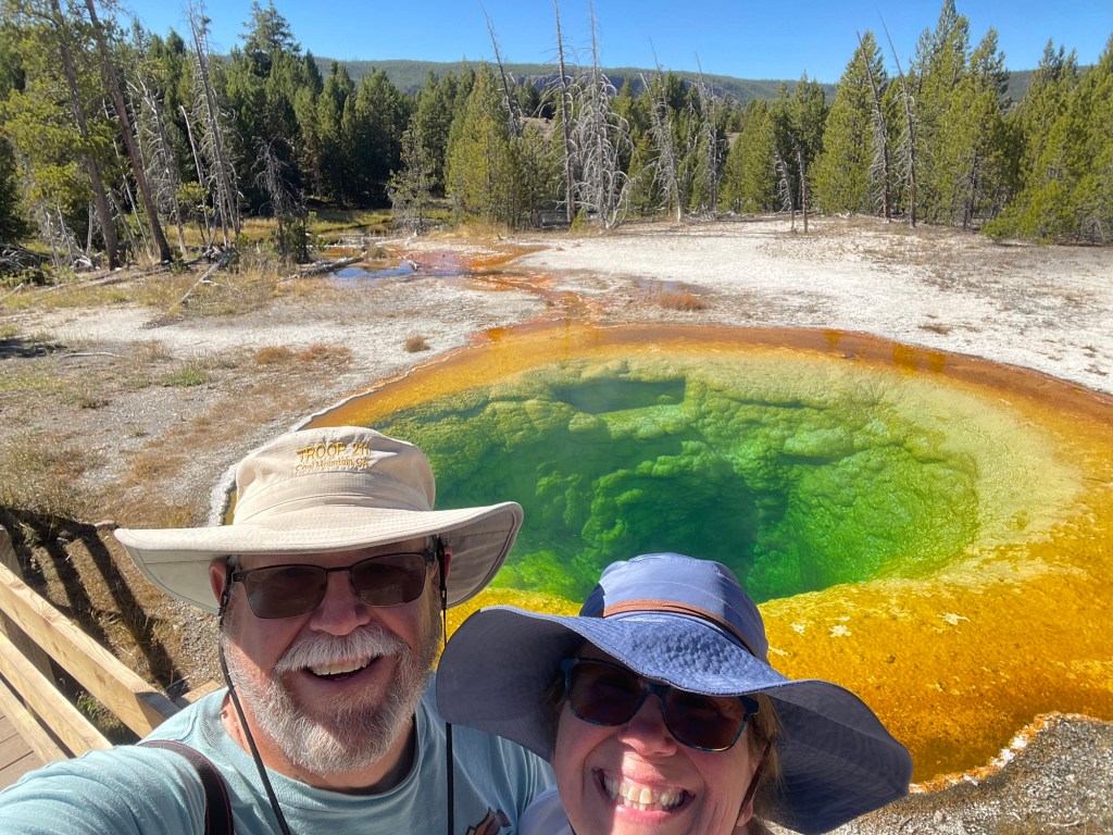Heading down the road from West Thumb, we stopped again at the Old Faithful area to finish what we started on Sunday. A couple miles of trail and boardwalk brought us past a bunch of active geysers, and to the most beautiful spring so far, Morning Glory Pool.