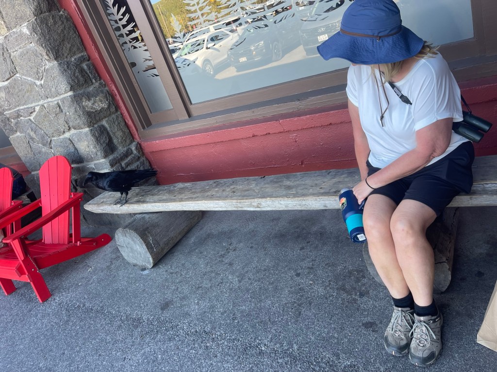 Susanne stopped off and made a new friend. The ravens in YNP are huge and have the funniest voices. Kind of a croaking noise, totally unlike any bird I know.