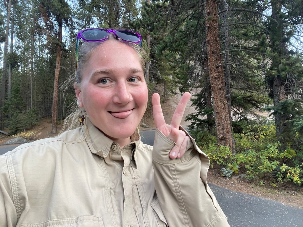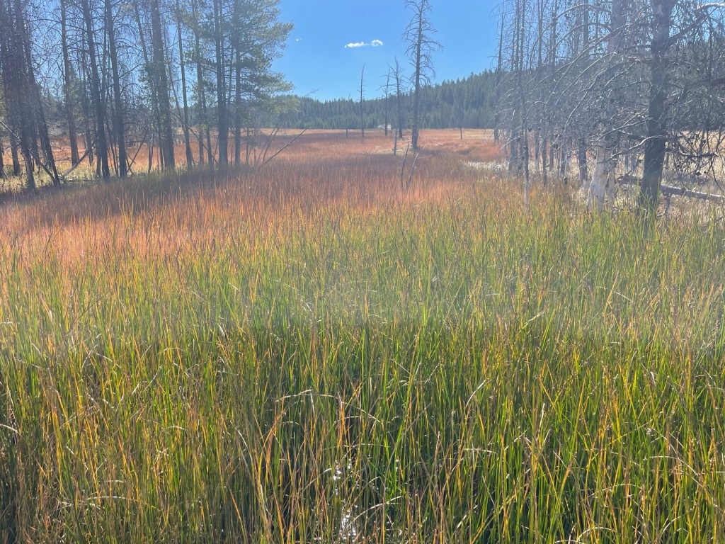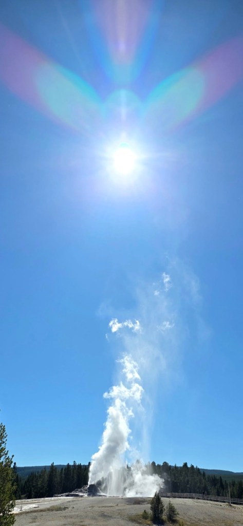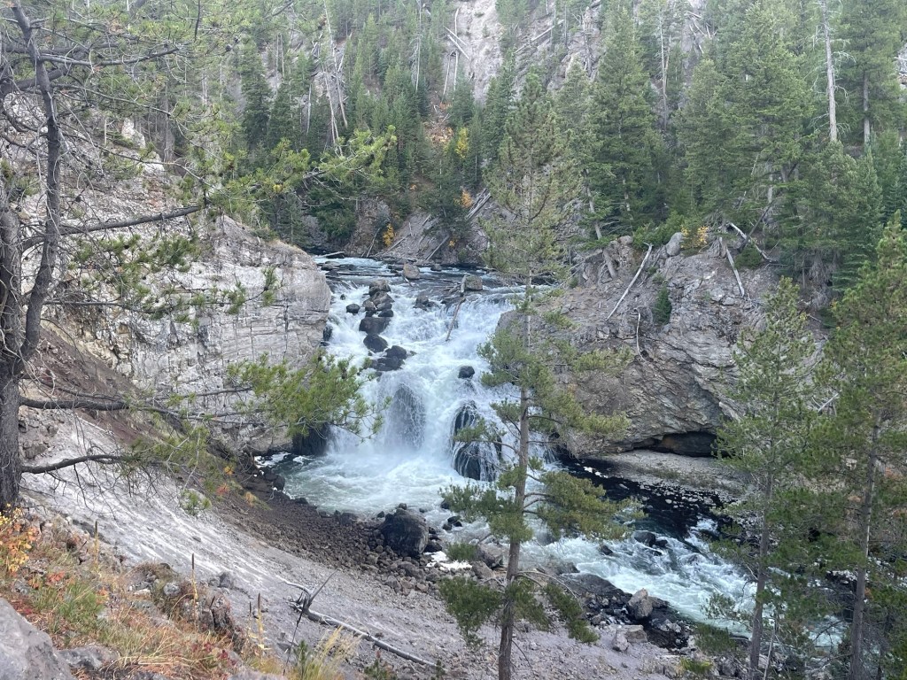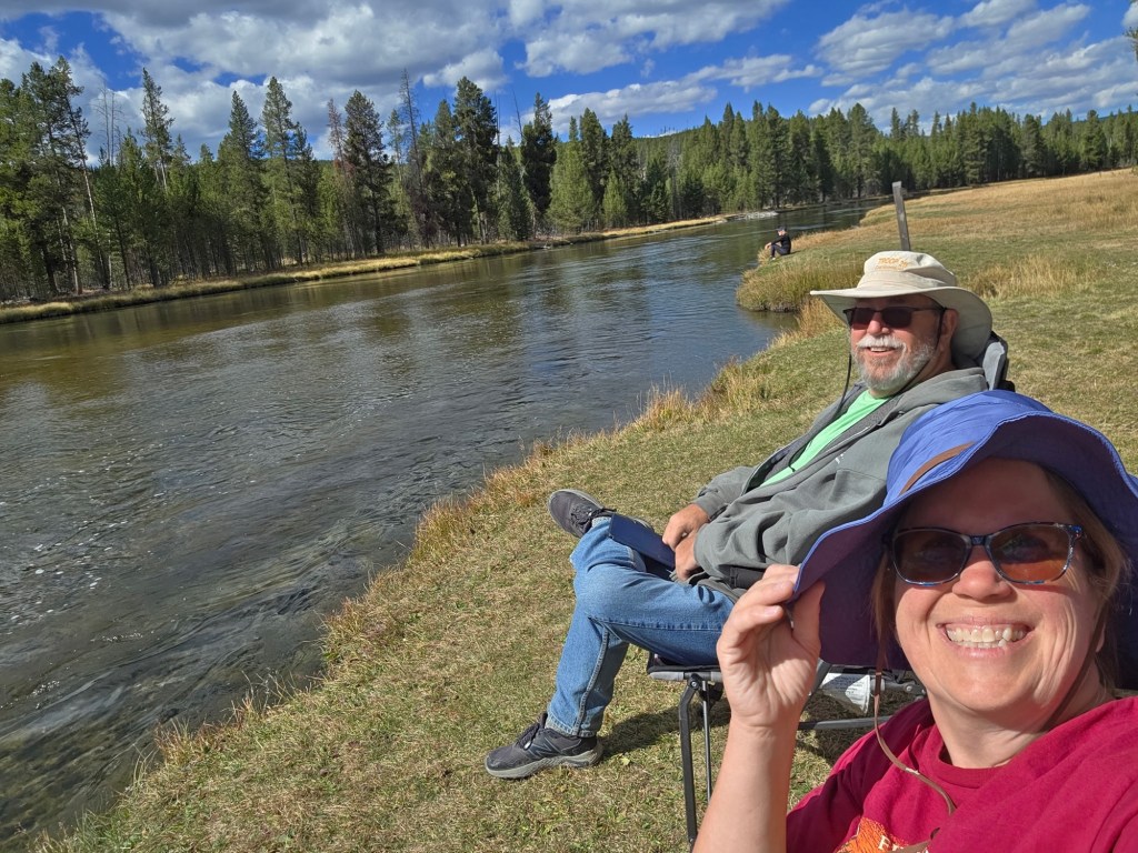 Friday we started out by hiking along the Firehole Lake road. Hiking, not driving the road because it is closed. Some less-than-intelligent individual ignored the signs saying NO RV’S and went down it anyway and broke the bridge. 🤬