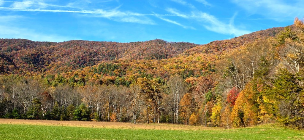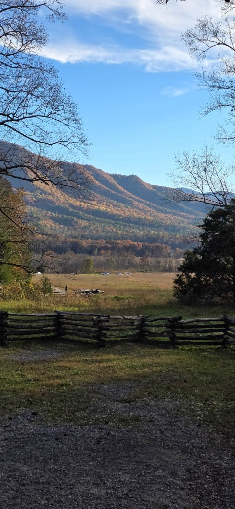 We’re spending the week in Townsend Tennessee. I’ve been coming here for over 50 years. Townsend is the tiny little gateway town to Great Smoky Mountain National Park, and more specifically, Cades Cove, a small valley area in the west end of GSMNP, surrounded by mountains and crisscrossed by beautiful meadows, forests, and streams.