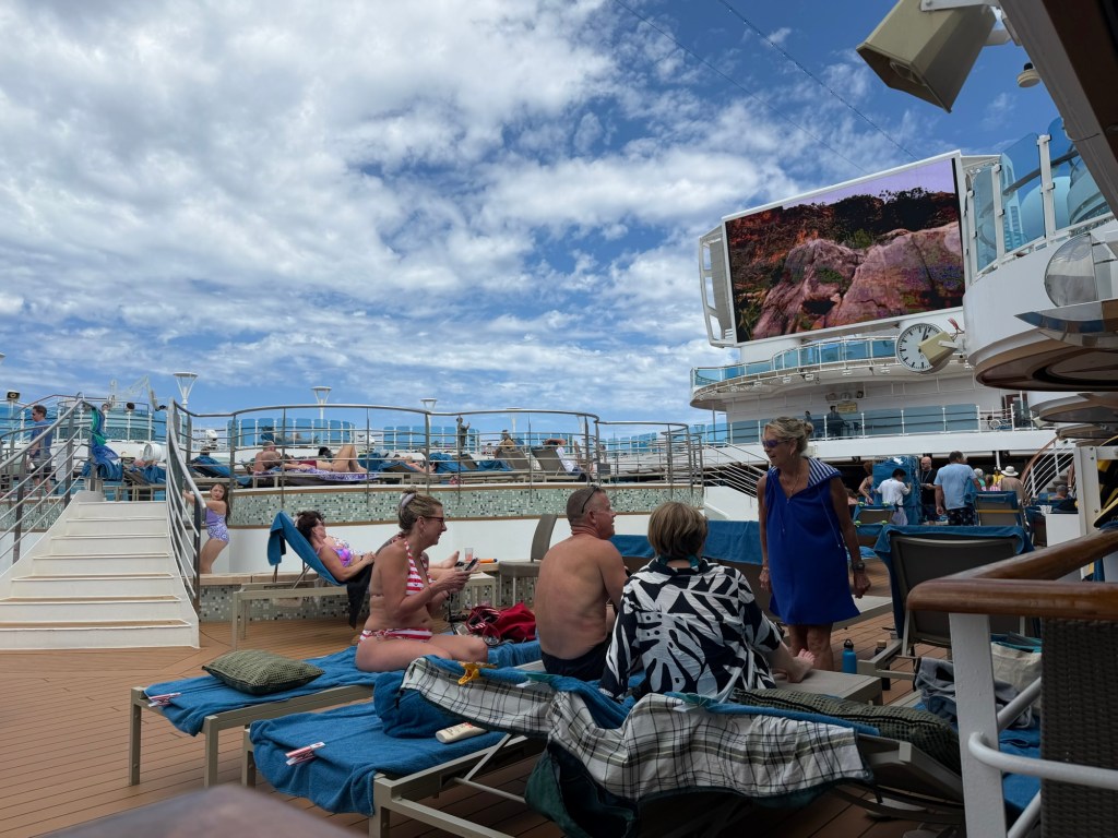 Today is a sea day, just getting us from Ft Lauderdale to Cozumel. We ate (because what else do you do on a cruise ship), then wandered around. I sat to read and people watch for a while and Susy went for a massage.