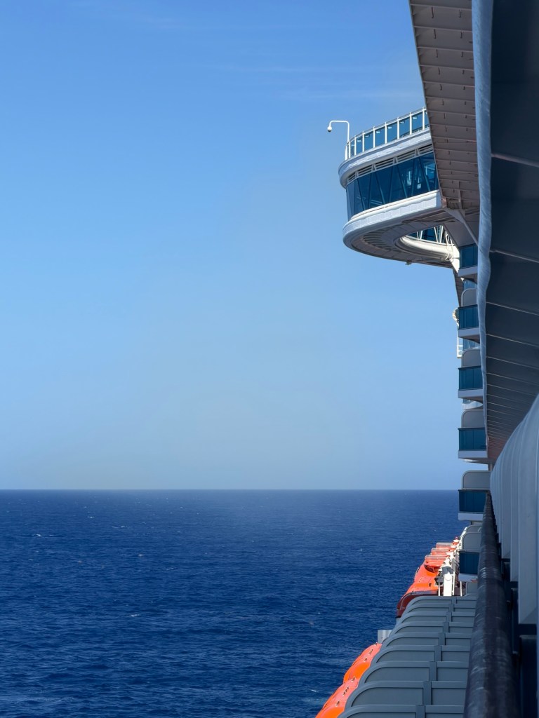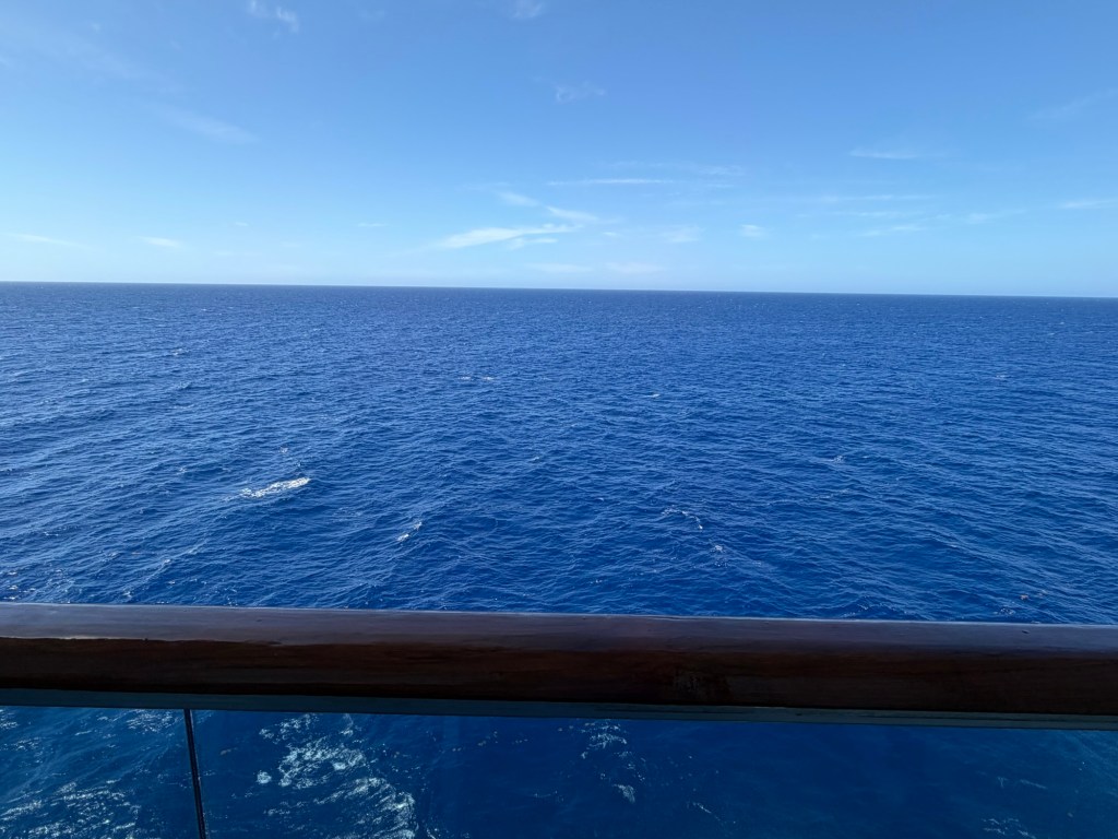 Somewhere in the vast blue sea, a speck of a ship cruises along. No land. No other ships. Nothing but wind and sky, water and wave. At least on this side.